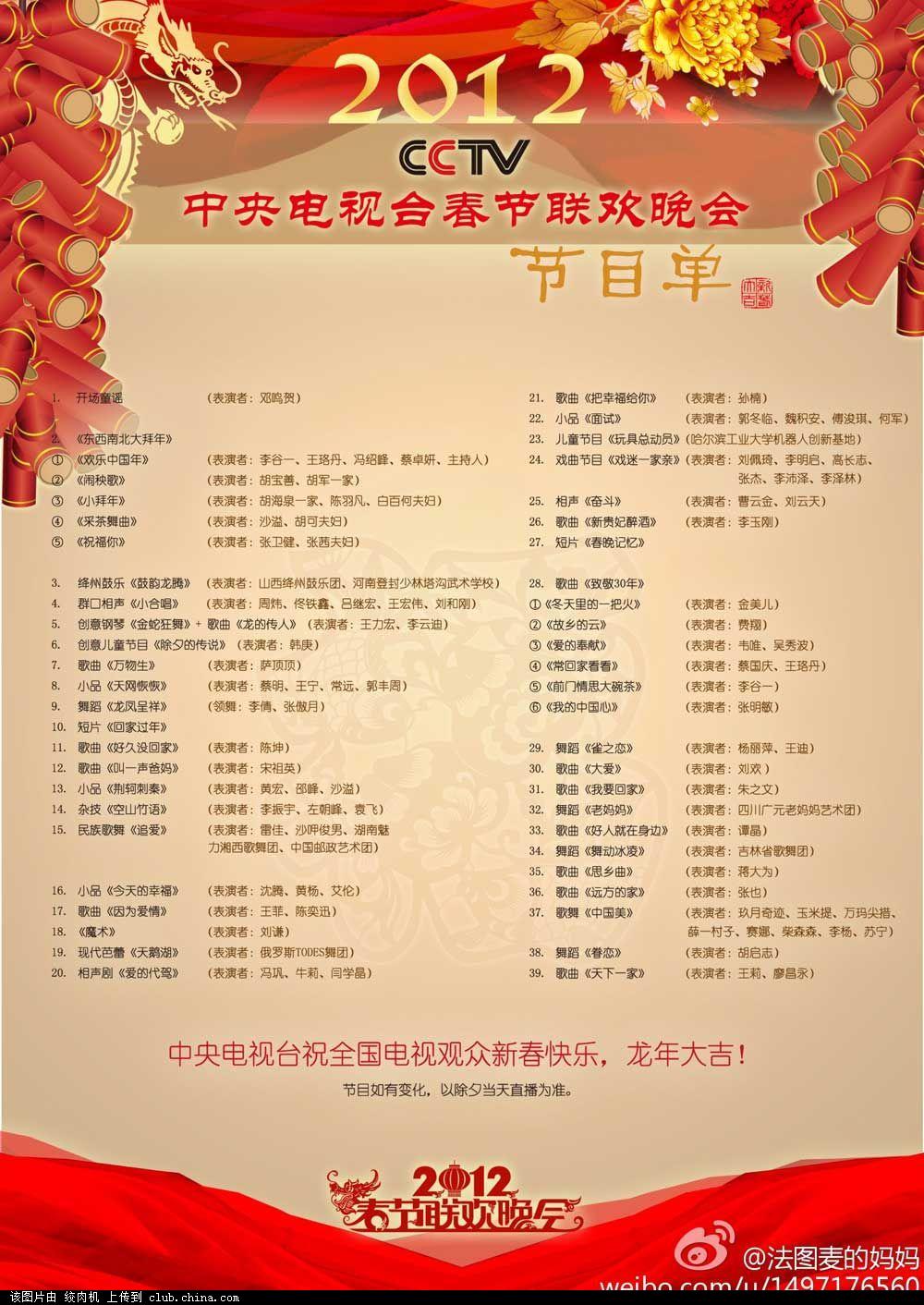 一丁点肥肉都不敢吃 老实过鬼 荣誉会员 注册 2007-07-17 帖子 16,132 反馈评分 19 点数 61 2012-01-26 #23 今年的个人感觉比去年和去去年的好。 重要的是长辈爱看,难看点也就不是那么重要了。