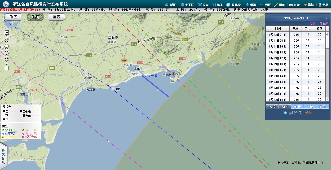 白色孔布 博士生 注册 2006-03-29 帖子 1,226 反馈评分 1 点数 61 2013-08-13 #35 23时卫星云图及预报路径: [attachmentid=316466] [attachmentid=316467] [attachmentid=316468] 五个预报台,有四个预报的路径指向电白。 按现在台风的移动速度,10级风圈将在8小时内登陆电白,台风中心将在15小时内进入电白。将受到10级以上狂风肆虐11小时以上,可怕! 附件 01.jpg 544.7 KB · 查看: 501 02.jpg 488.2 KB · 查看: 487 03.jpg 606.4 KB · 查看: 484