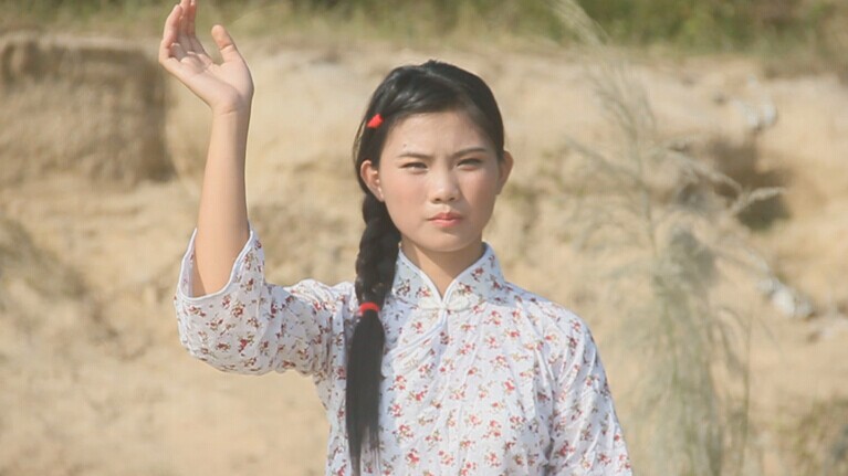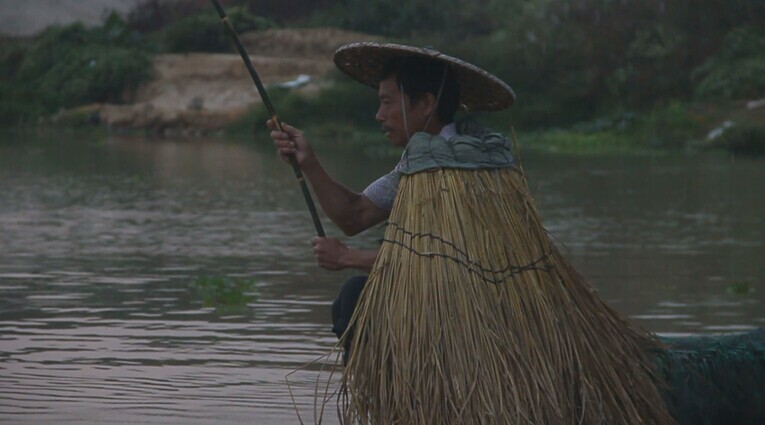 画面唯美(除了沙堆),小姑娘的表情还是很入戏的,没有想到电视台还找来了蓑衣,道具用得好。芦苇入画,满好。