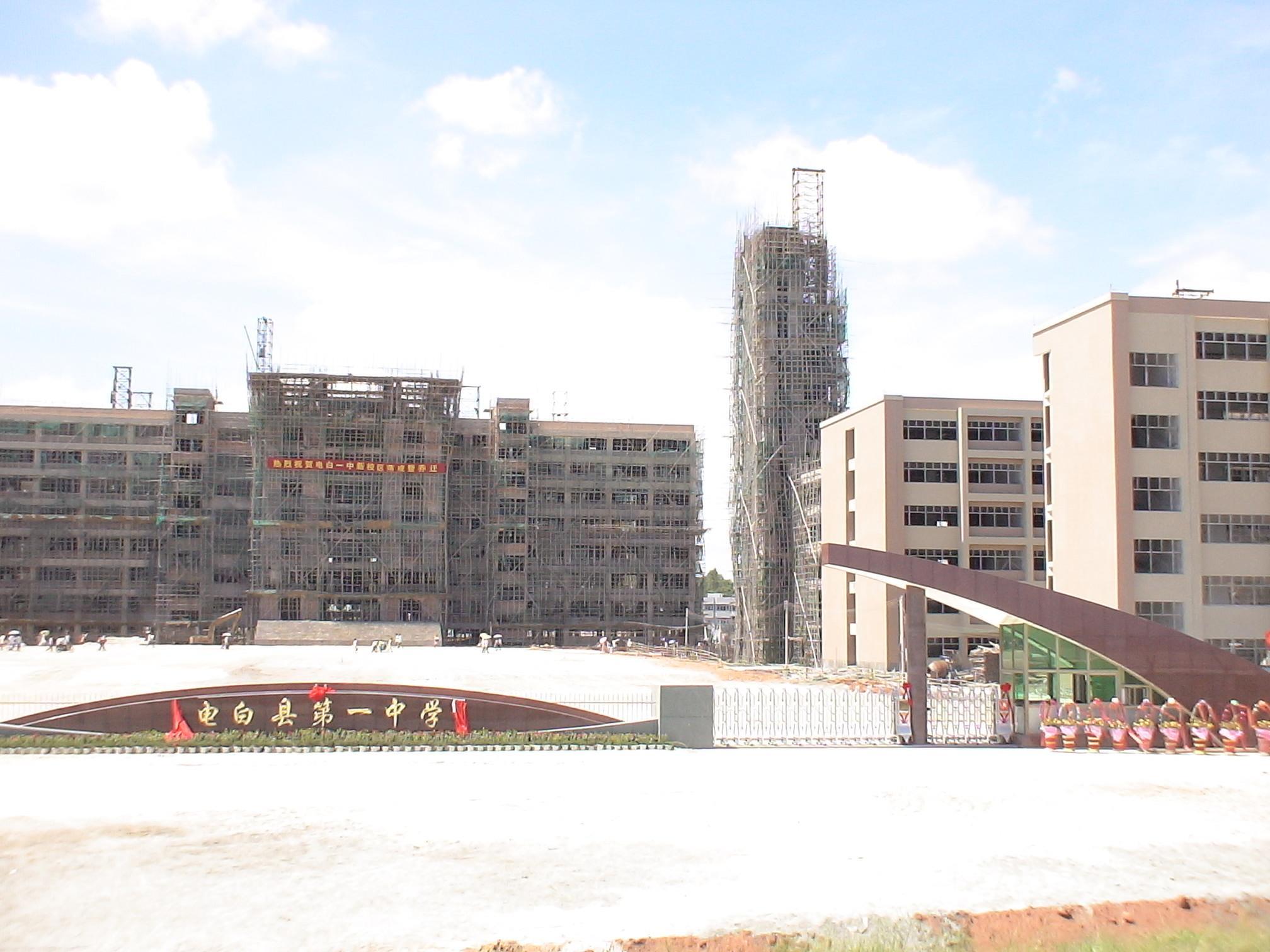 新一中现在门口的模样.里面还没修好的竖立长长的建筑物应该是钟楼.其实这个大门以及里面布局设计,基本上跟珠三角的一些高级中学基本相同