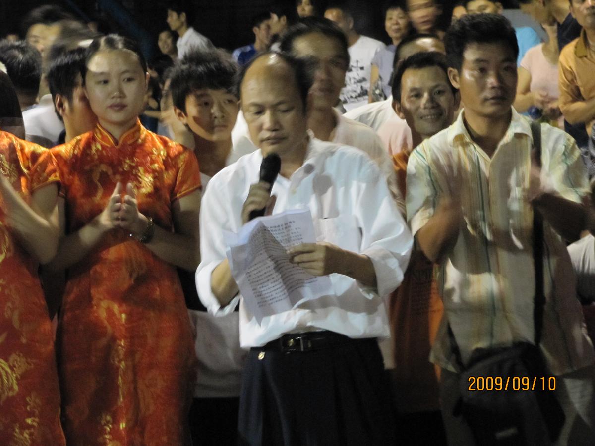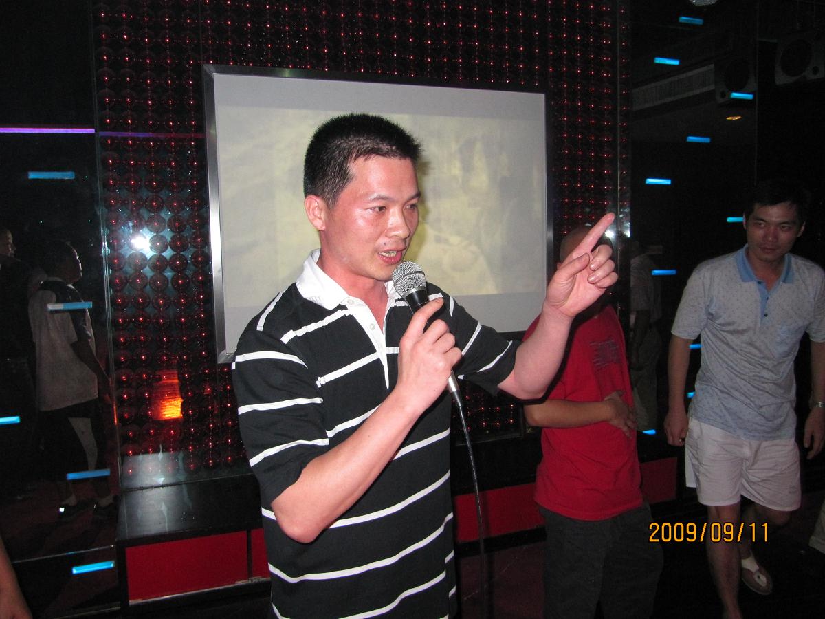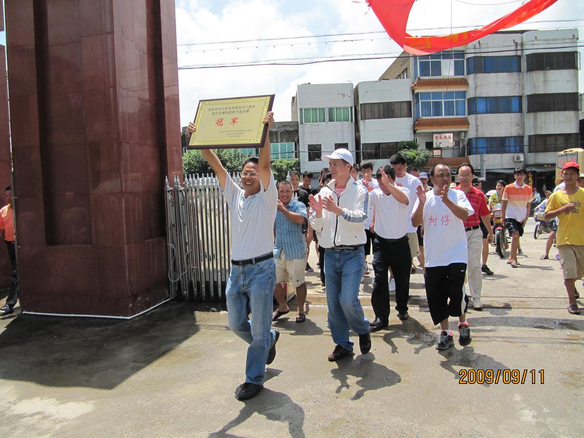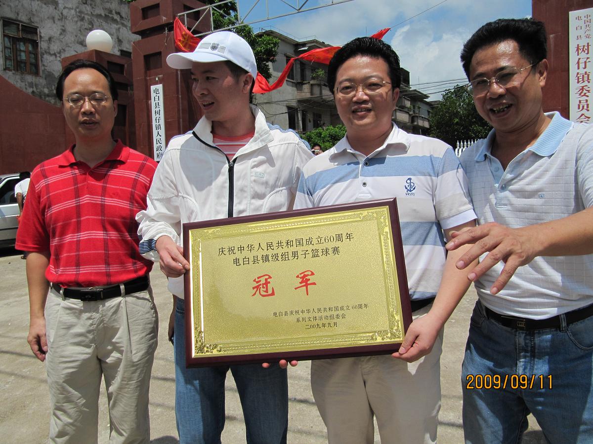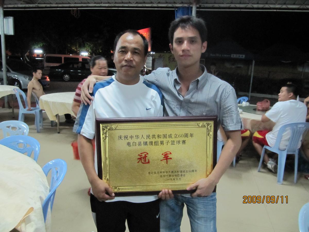 九六年树仔篮球队主力队员之一的陈伟强,为树仔镇第一次夺得全县篮球冠军立下汗马功劳。作为一个生意人,他非常的忙碌,在百忙之中亲自回来带队,并负责代表团的部分经费开支,为今次夺冠做出了重大的贡献!当晚,他唱了一首经典的{五星红旗},他说:现在我的心情非常激动,藉此国庆六十周年,树仔篮球协会成立十周年之际,树仔篮球队在大家的共同努力、顽强拼搏下,不畏强手、越战越勇、时隔十三年后,再次夺得了全县篮球冠军,为树仔的篮球事业谱写了新的一页。他说:今晚在这里要感谢的人太多太多了,衷心感谢全体运动员的团队精神,感谢社会各界人士的大力支持,感谢树仔各村球迷的积极参与和呐喊加油!特别是有几位运动员的体育精神很值得大家的学习,让这种精神继续发扬光大。。。。。。。。。感谢还提到了内园村、登楼、山美、海丰、树仔圩、等村的大力支持、也提到了镇党委、镇政府的高度重视、镇领导几乎每场到现场为健儿们打气助威,海景湾大酒店、环城酒店的精心安排,特别提到了代表团后勤组无私奉献和辛勤劳动、詹华诚、陈光泉、陈光儒、钟才、詹志新、林武子、等等人