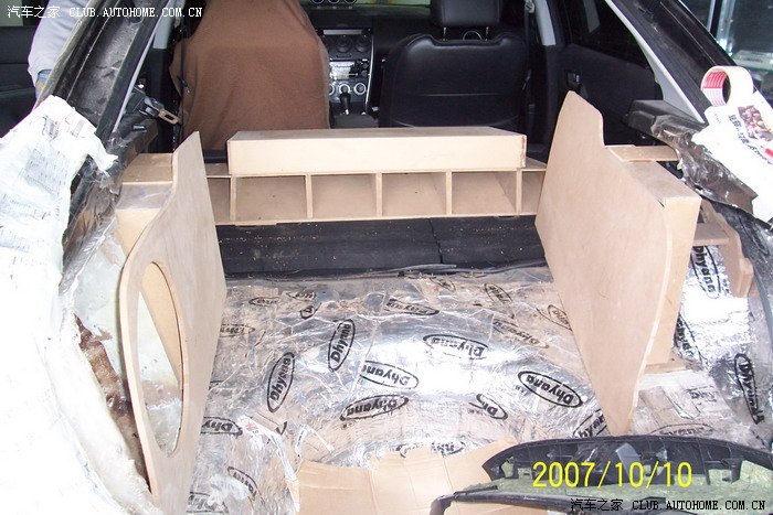 据4S店的人员介绍,马六轿跑的原车音响价值超过一万元。刚开始听的时候确实比其他车效果要好。但听久了发现也很一般,主要是高中音层次感不强,声音容易混,低音下潜不够。后来把原车喇叭拆下来后发现了原因所在。经过多次咨询,最后决定去温州道声专业汽车音响改装店升级,同时做后备厢的造型,配置如下: