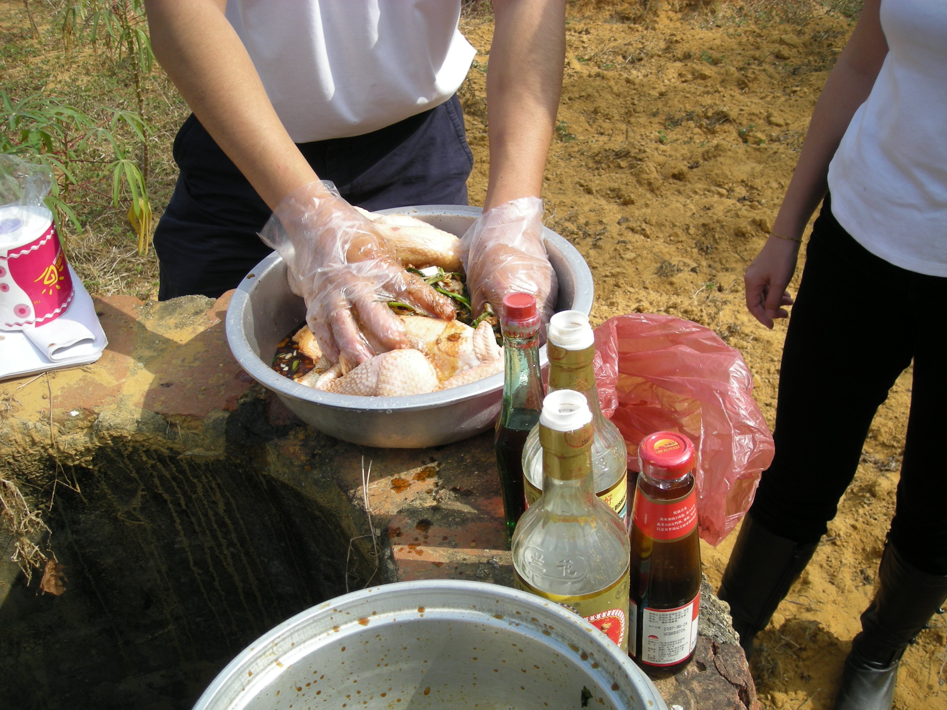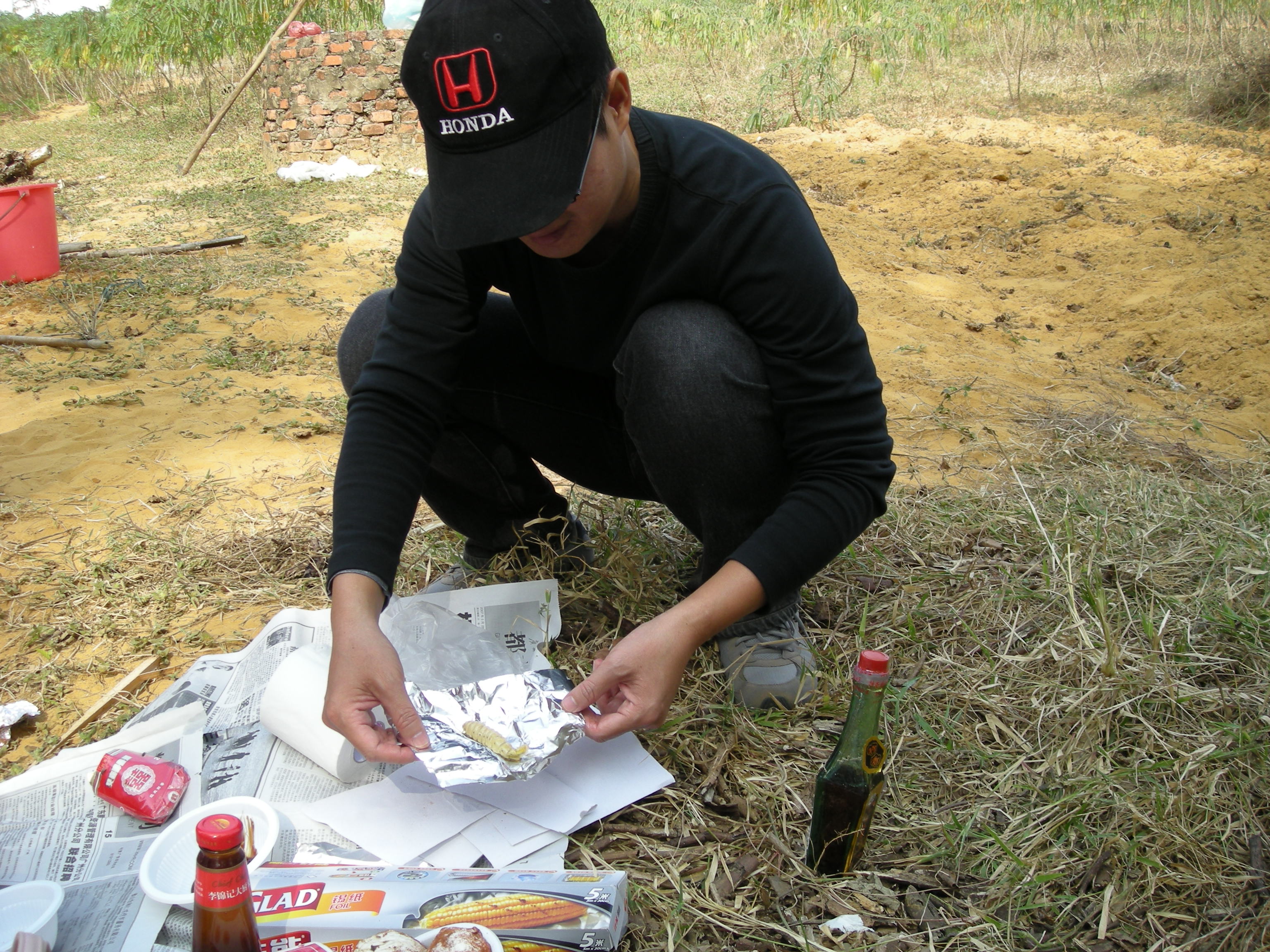 蕃薯就放进去过。。。鸡要埋多久才熟。。。