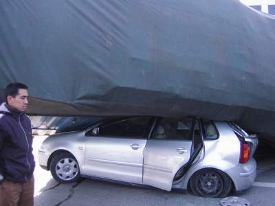 从这面看看,哇,居然没事,车主安全撤离