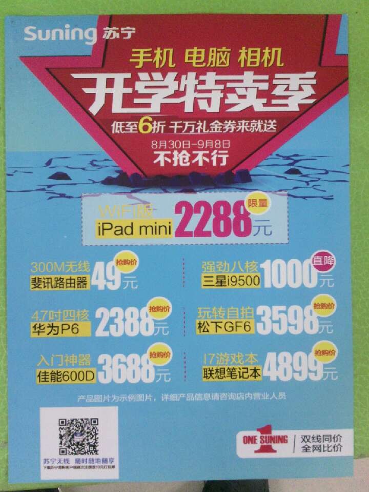 8月30日-9月8日,电白苏宁电器(手机。电脑。相机)低至6折 (1人在浏览)