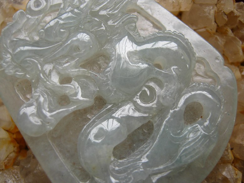 所谓“龙”其实是指翡翠中的绿色。也就是说:在通常情况下,无论在质地的粗细程度或者透明程度上,有绿色的部位比没有绿色的部位?地子?,都要好一些。当然,有时翡翠绿色和地子之间的这种差别表现的过于强烈时,就象下一个格言所说了。狗屎地子出高绿。