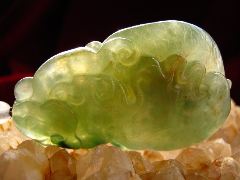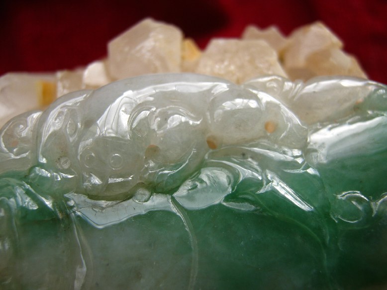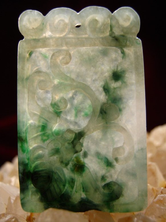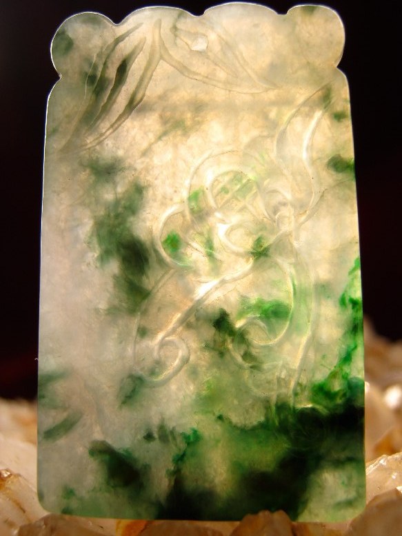 翡翠玉是其它宝石无法比拟的,不但颜色美,而且可以雕琢各种各样的图案来象征:“吉祥如意,平安美丽,健康长寿,幸福美满,富贵发财”等等;也是文化和修养的溶合。