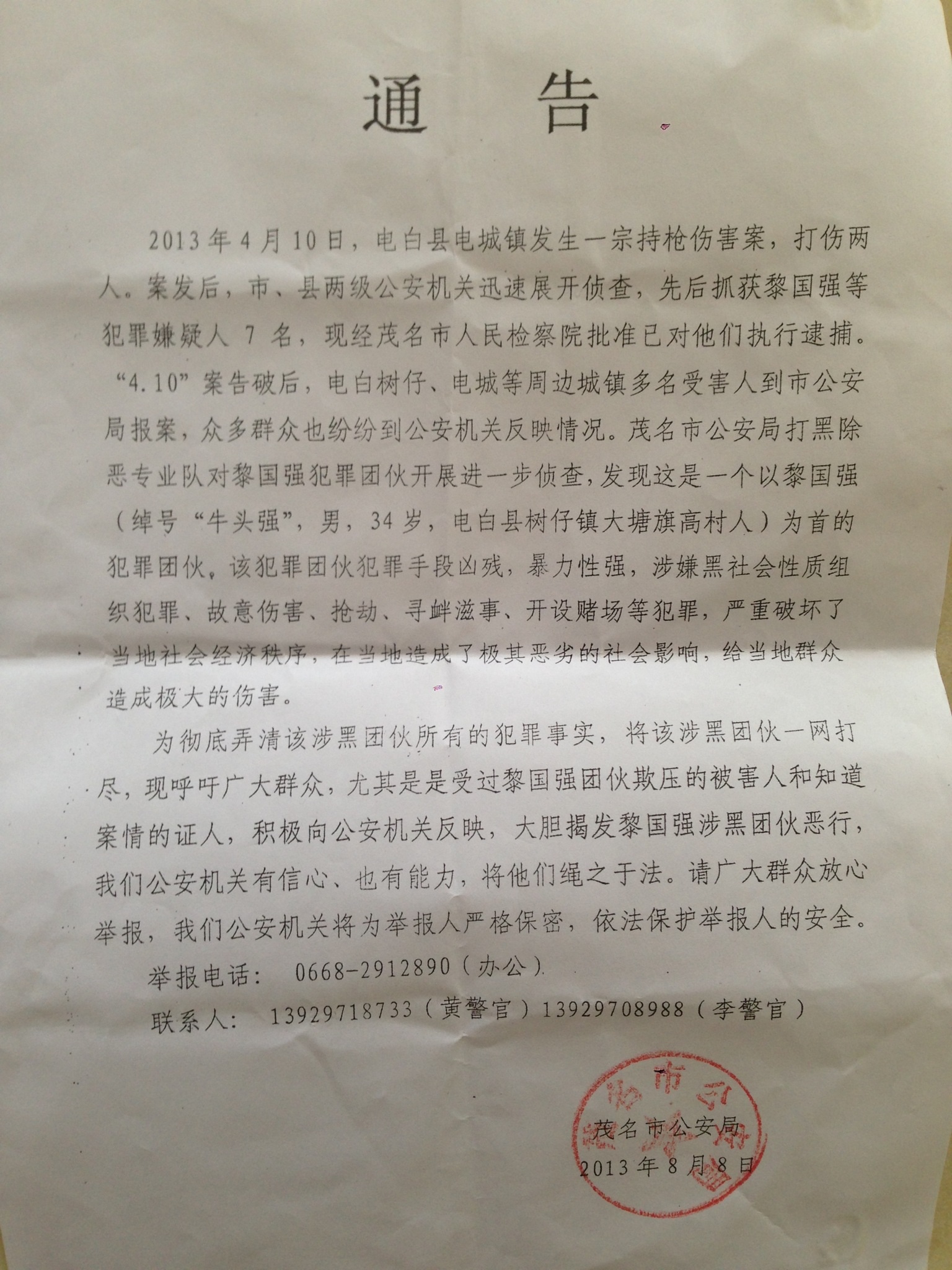 <b>电白410枪击政协委员案件特大爆料(惊天黑幕,已证实为实名举报)</b> (3人在浏览)