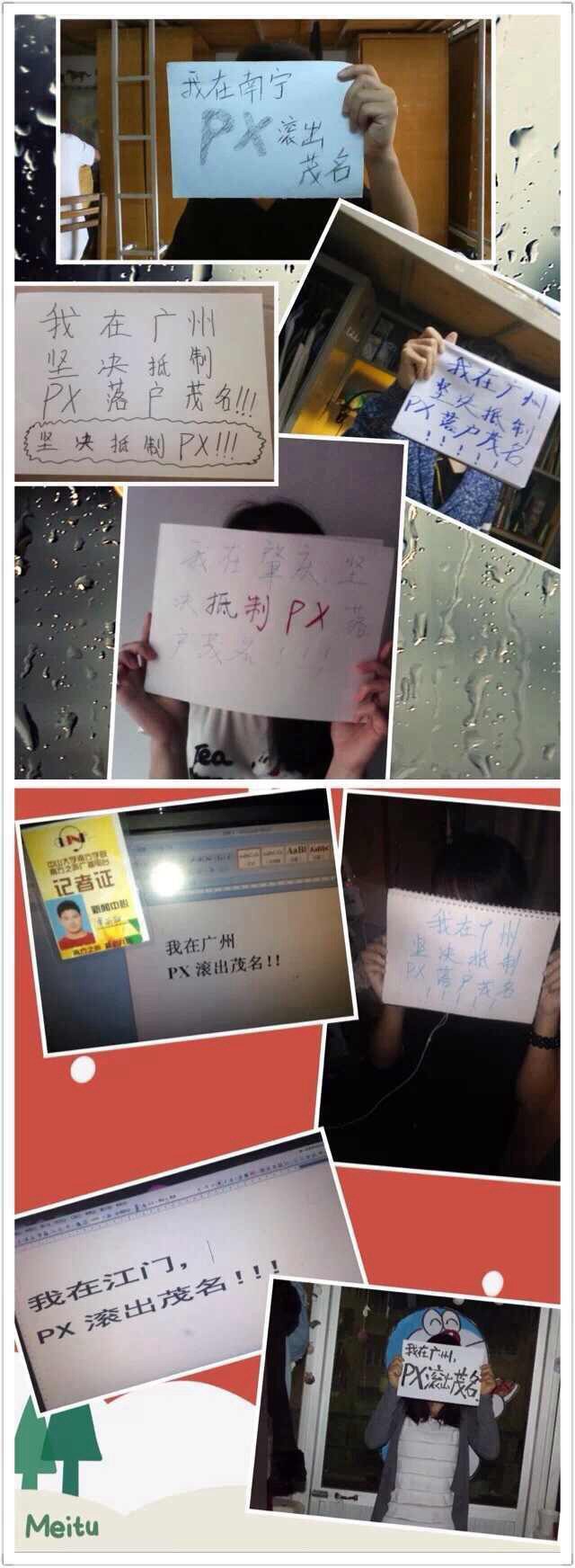 这是来自茂名学子从全国几十所高校发回的诉求与对家乡的期望,我们不是愤青,只是想通过这种和平的方式表达自己的观点,无论这个项目好坏与否,它都是一个不得人心的项目。政府应该考虑的是充分了解我们的诉求,而不是通过打压和茂名人民作对抗,我们不愿意看到暴力,我们需要的只是一个还能居住的家,一个能让我们在外地还能引以为傲的海滨城市…