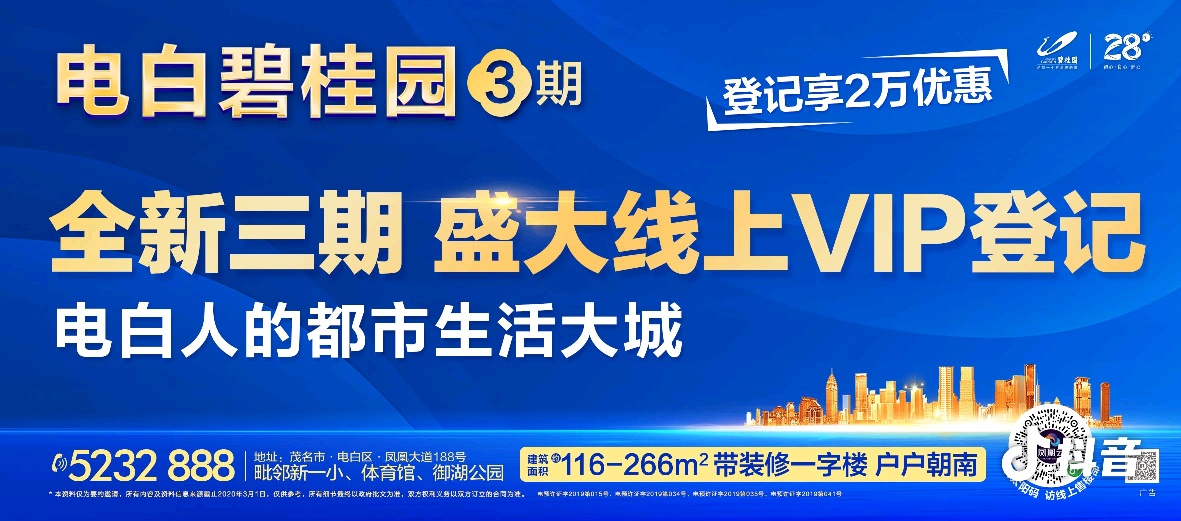 【电白碧桂园·3期】 全新三期 盛大线上VIP 登记 登记享受2万优惠 电白人的都市生活大城 约116-266㎡带装修户户朝南 登记热线:欧王志15626485034
