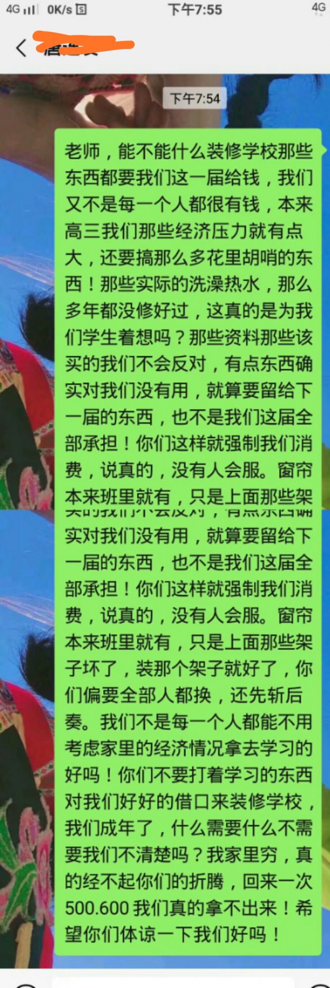 水东中学吧,太恶心了,我有一个孩子在高三16班,过节放假回来讲,三个级长都强迫他们买校园卡,还不能买30元的,一定要买80元的带话费的。如果不想买就要叫家长到学校来签名。否则就记分扣留档案,不给他们毕业。一方面不给他们用智能手机,一面在微信上布置功课。。。。他们不用智能机能上微信做功课吗??上次不是叫我们家长把他们的手机都换成老人机了吗,不给他们用智能机,我们非常理解,全都赞成换了,但是现在又来这个就想不明了。本来他们高三可以不穿校服的,因为前几届都一样不穿。到他们这届就硬迫他们买???他们的班窗帘好好的,只是不同色,硬要他们换成同色的和买书柜。窗帘不改成同色的也不行,他们想自己换成同色的也不行,一定要学校换,这个我就想不明白了。太多太多了,不想讲了,作为家长,我们只能呵呵了