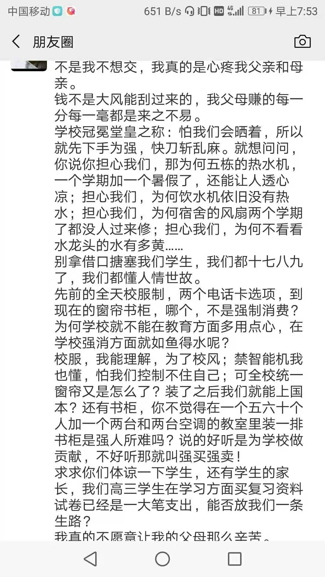 我想看看级长怎么回复这位学生的,半凭学生一面之词不足以令人信服。